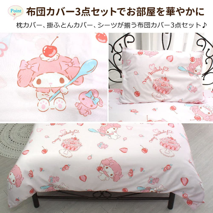 Parure de lit 3 pièces Sanrio My Melody avec housse de couette et draps pour lit simple